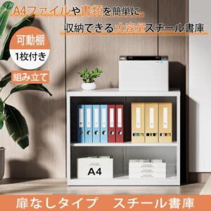 CYFIE スチール書庫 オープンタイプ 3段 A4対応 可動棚 幅90×奥行40×高さ105cm