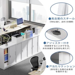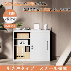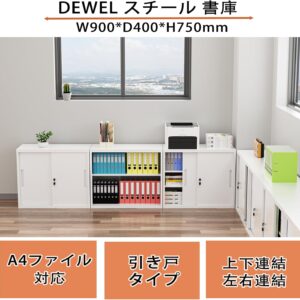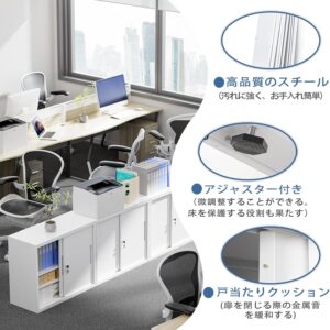 CYFIE スチール書庫 幅900×奥行400×高さ750mm 引き戸 鍵付き A4対応 可動棚 ホワイト(L023)
